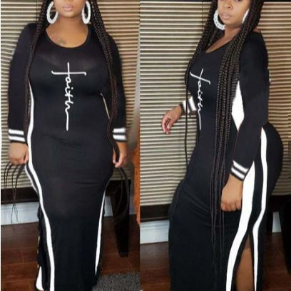 2024 TEMUアマゾンの秋のストライプにまたがって、ロングスカートの丸首のプリントをつなぎ合わせます。