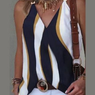 2024欧米アマゾン夏プリントラウンドネックベスト袖なしtシャツカジュアルゆるいウエストシャツ女性1767