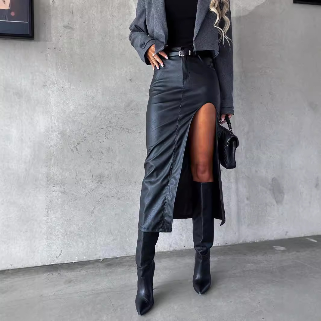 2024国境を越えた対外貿易労働者の秋の新型装風多ポケット高腰開叉包尻女性スカート長型