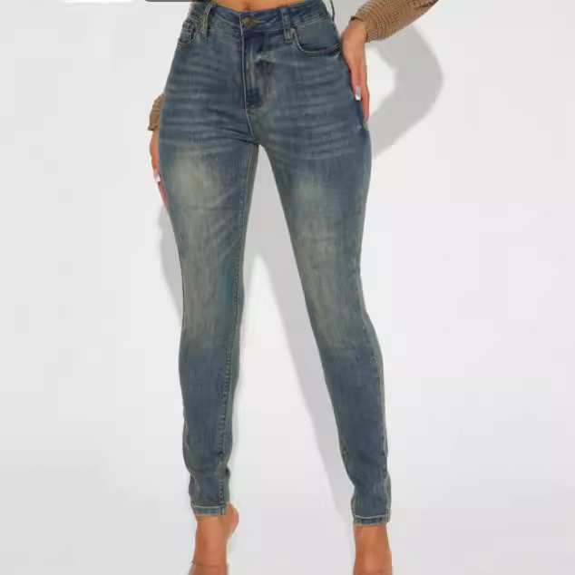 2024秋の新型弾力性の高い腰のジーパンのズボンの女性、源の卸売りの大量の現物は代行します。