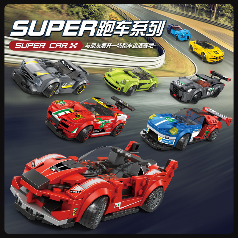 万格2878スポーツカーの小さい粒子の積み木はおもちゃの子供の益智diyの積み木をつづり合わせて積み木の車のおもちゃを挿し込みます。
