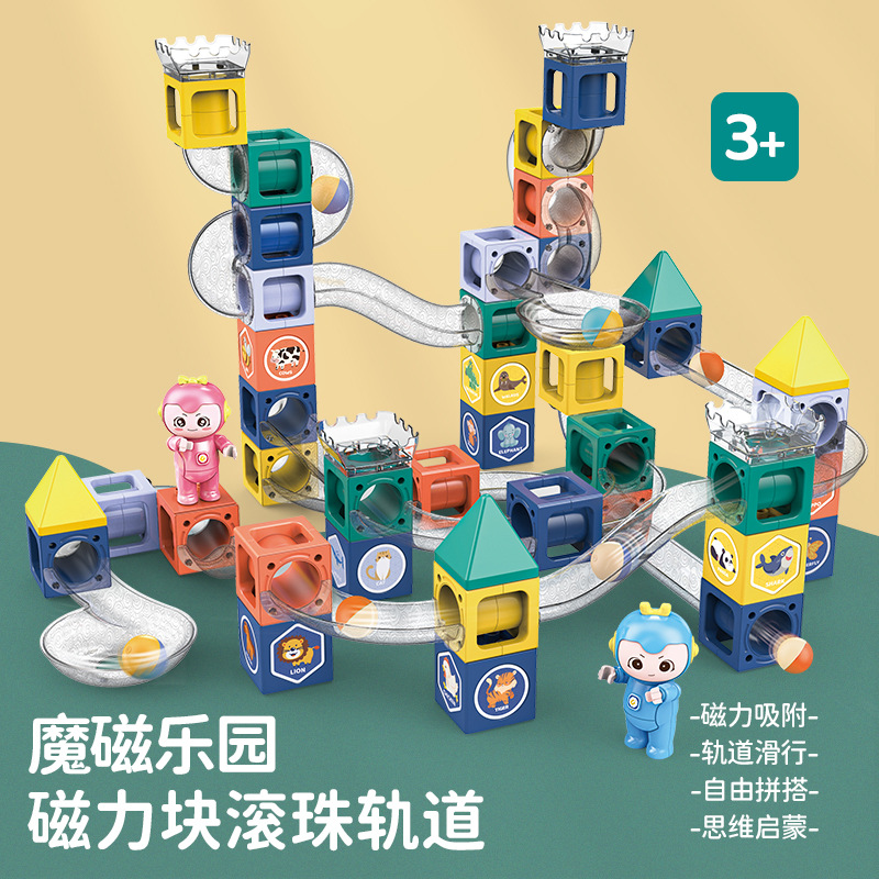 磁気ブロックボール軌道積み木子供益智百変diy組み合わせボールシュート磁気積み木玩具