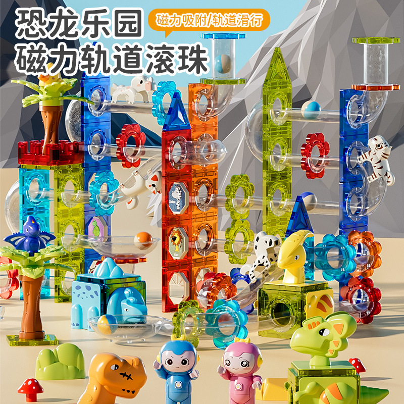カラー窓磁力片恐竜楽園磁力合わせ軌道ボール積み木子供益智diy磁気玩具