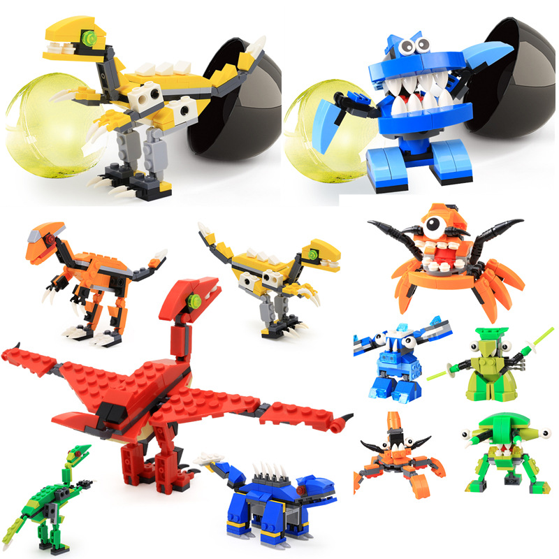 万格6801恐竜の卵の小さい粒子の積み木はおもちゃの子供の益智の積み木を詰めて恐竜のおもちゃを挿し込みます。