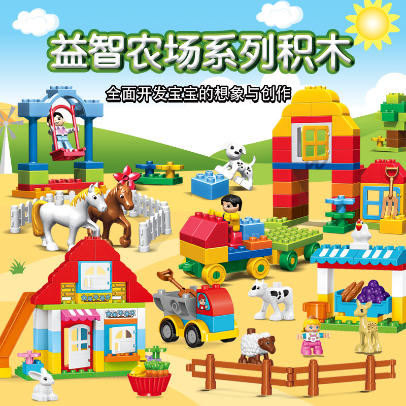 大きな粒子のままごとの動物の農場は積み木の子供の益智diy動物の養殖のシーンをつづり合わせておもちゃを挿します。