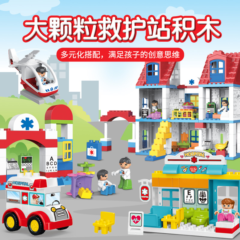 大粒都市病院の救援チームは積み木の子供の益智diy病院のシーンを合わせておもちゃを作ります。