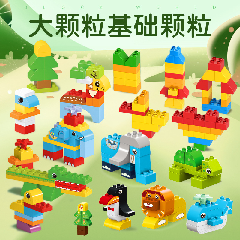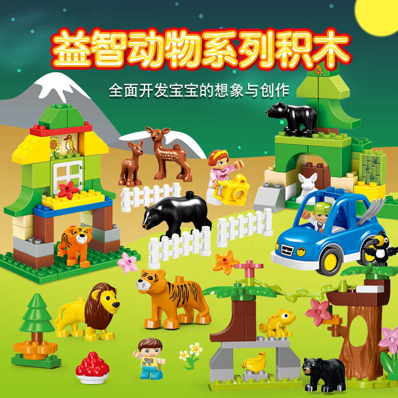 大粒の積み木と積み木の動物園のシーンの子供の益智diyテーマ楽園の積み木のシーンは家を過ぎます。
