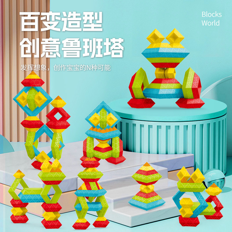 大粒のピラミッドの積み木の子供は畳み込みます。