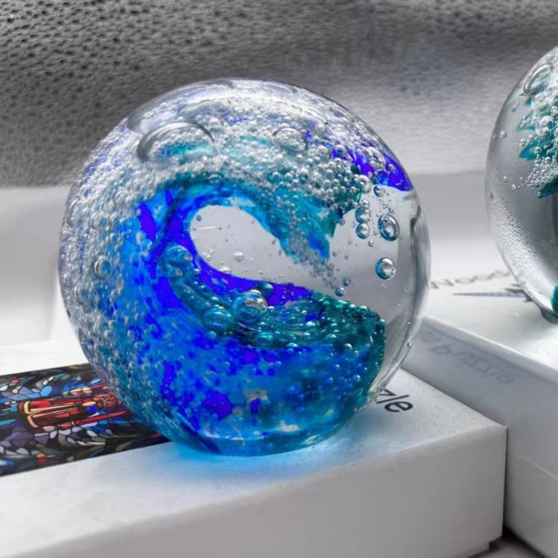 クリエイティブな手作りのガラスボール、ウェーブボール、ペーパータウンオーナメント、小さなギフト、アーティストシリーズのクリスタルオーナメント