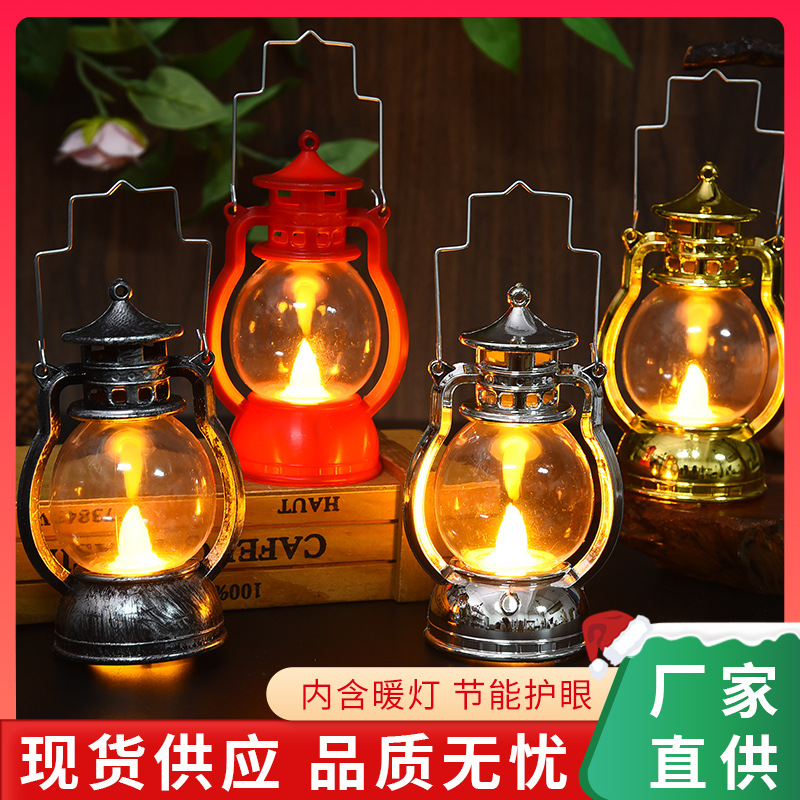 クリスマスレトロ小馬灯led電子ろうそく灯手提げ小ランプ創意祝日装飾用品置物