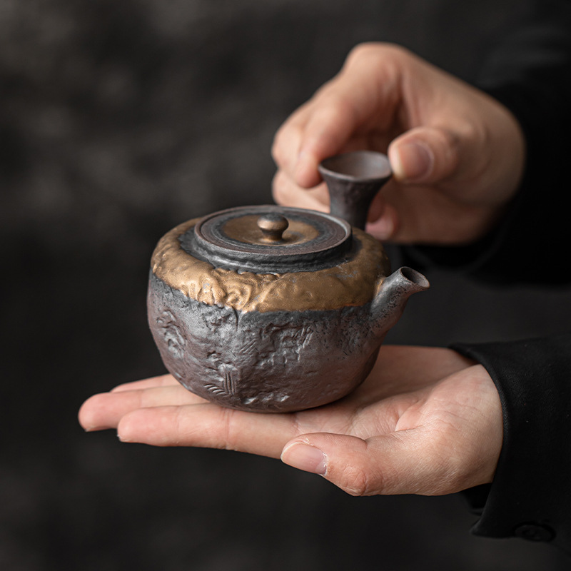 古早焼黒檀木側は壺の陶磁器の工夫のティーポットの金の鉄の釉薬のティーポットの日本式の復古の粗い陶器の単壺を持ちます。
