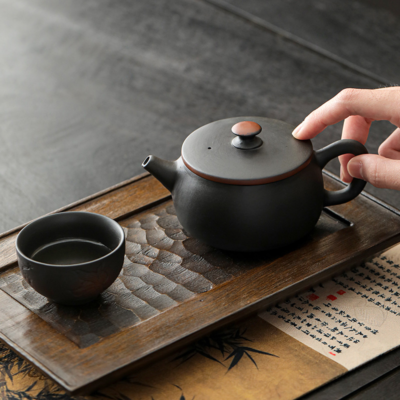 原鉱紫陶素麺黒漢瓦壺200ml名家大家純手作りティーポット中国式紫陶壺