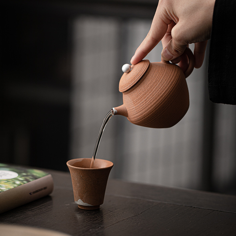 黄土の赤い中国式の陶磁器の杯の粗い陶器の復古の敦煌の工夫の茶器の1杯のお茶の杯の家庭用の主人の杯