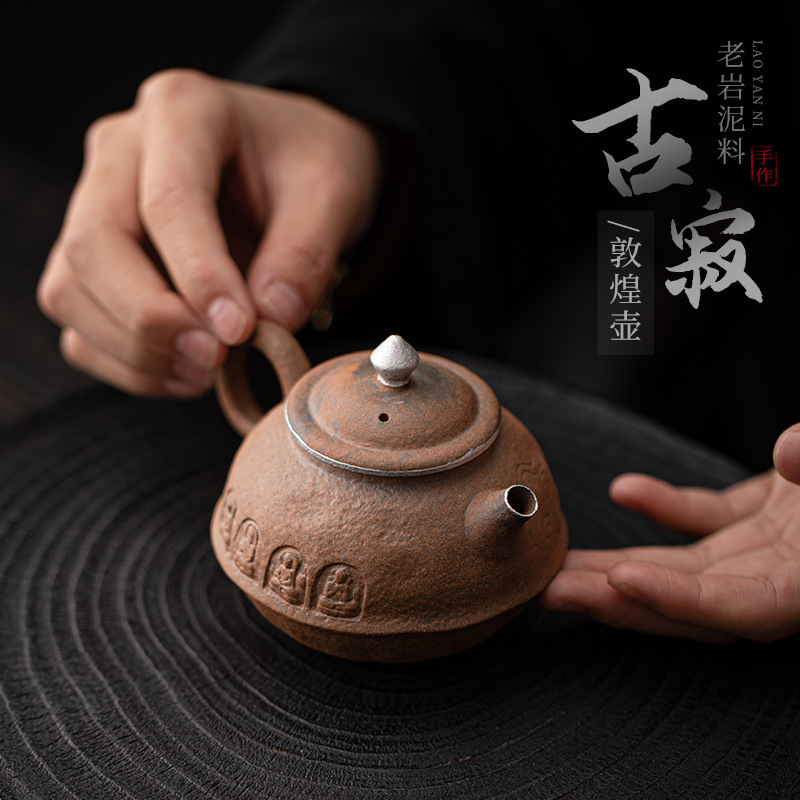 空寂斎老岩泥敦煌壺手作りの銀ティーポット