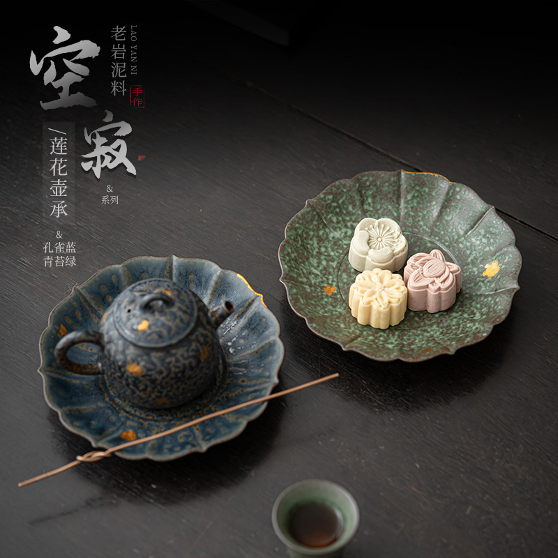 空寂斎老岩泥蓮花壺承青銅釉文人茶承陶磁茶器乾泡盤茶托日本式果物皿