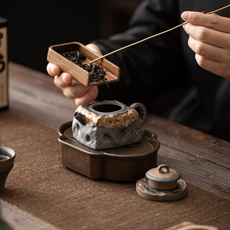 日本式の金鉄釉炭炉のお茶セットを煮ます。