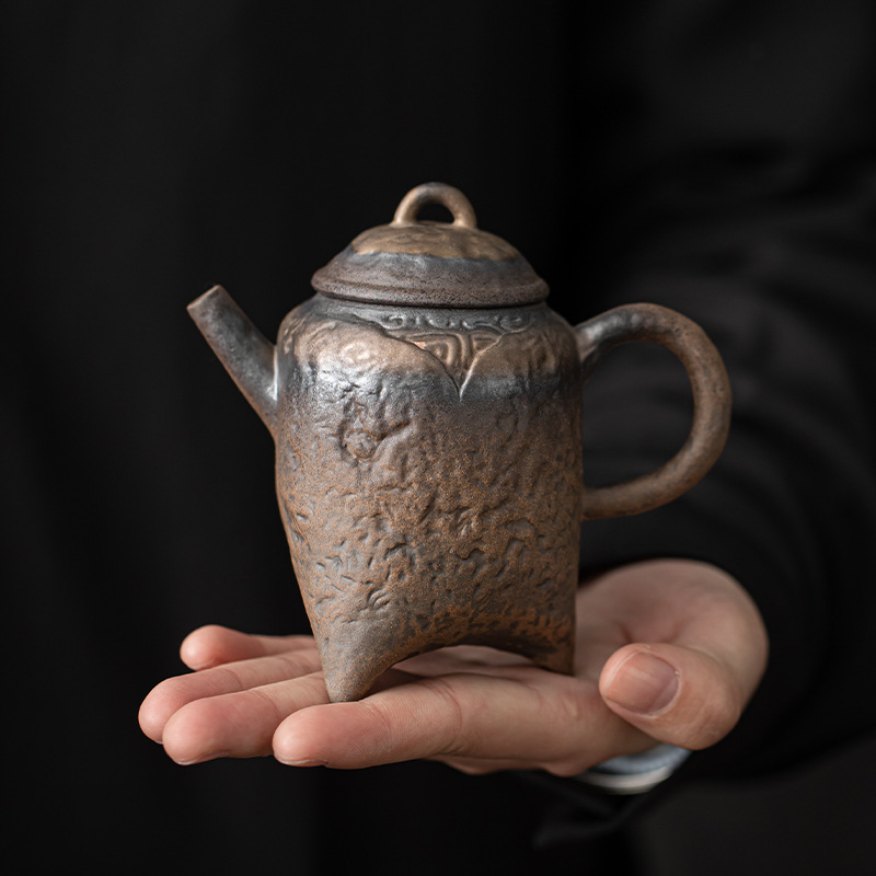 金鉄釉岩方壺粗陶家庭用オフィスレトロ陶磁器ティーポット個人ポット