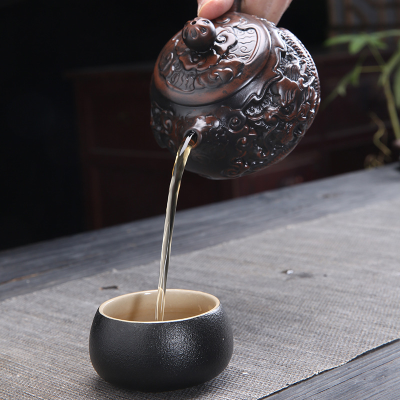 レトロ古い岩泥陶磁器ティーポット古早焼金鉄釉創意泡茶飲むティーポット家庭用オフィス茶器