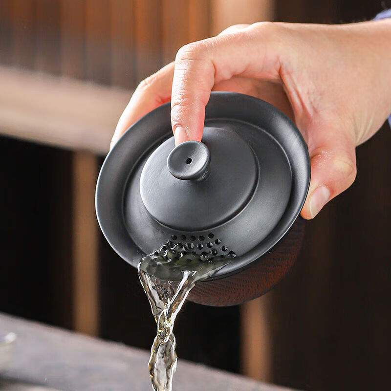 手羽木茶道六君子粗陶茶筒実木六君子セット陶磁器工夫茶器部品