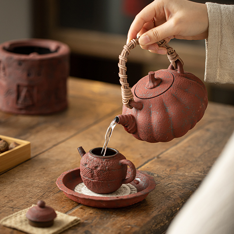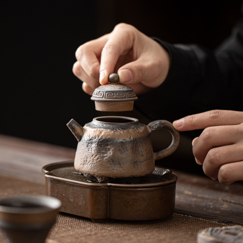 古早焼粗陶古風壺金鉄釉陶磁器急須カンフー茶器個人壺家庭用濾過茶水筒