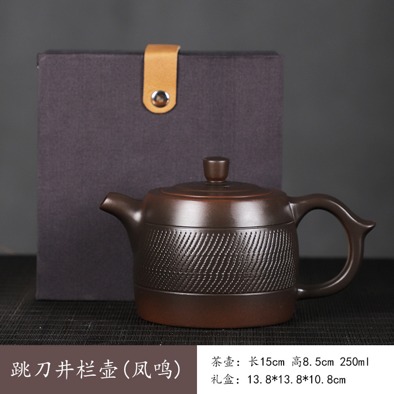 創意紫陶全手跳刀紋鳳鳴井欄干壺家庭用茶器セットシングルティーポットレトロ紫陶壺