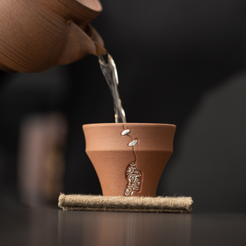 空寂斎老岩泥レトロ主人杯日本式手作り銀釘杯粗陶品茗杯陶磁器カップ