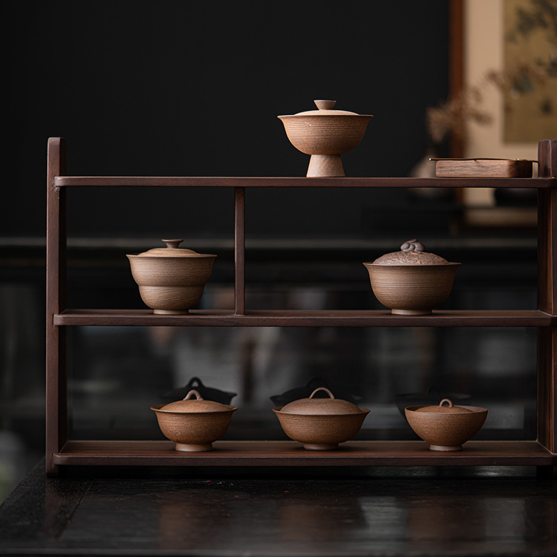手握り岩泥粗陶高足蓋碗手作り古風工夫茶器茶わん家庭用パーマ防止茶碗