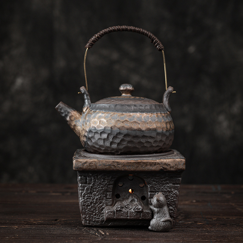 古早焼囲炉煮茶器セット金鉄釉陶壺提梁湯たんぽ家庭用電気陶炉煮茶炉