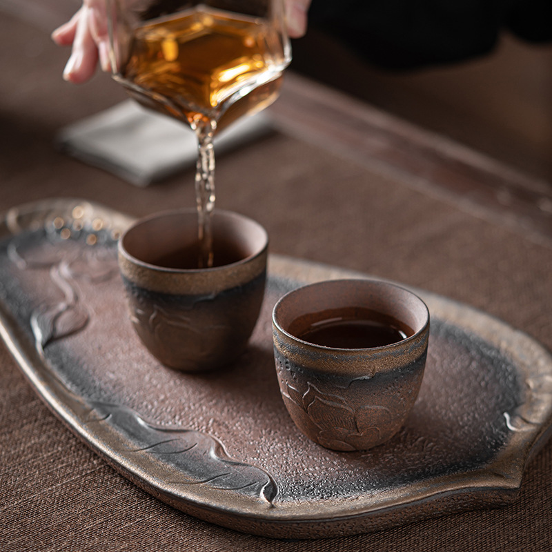 日本式粗陶茶杯手作りレトロ品茗杯聞香杯羅漢杯金鉄釉薬陶磁器工夫茶杯