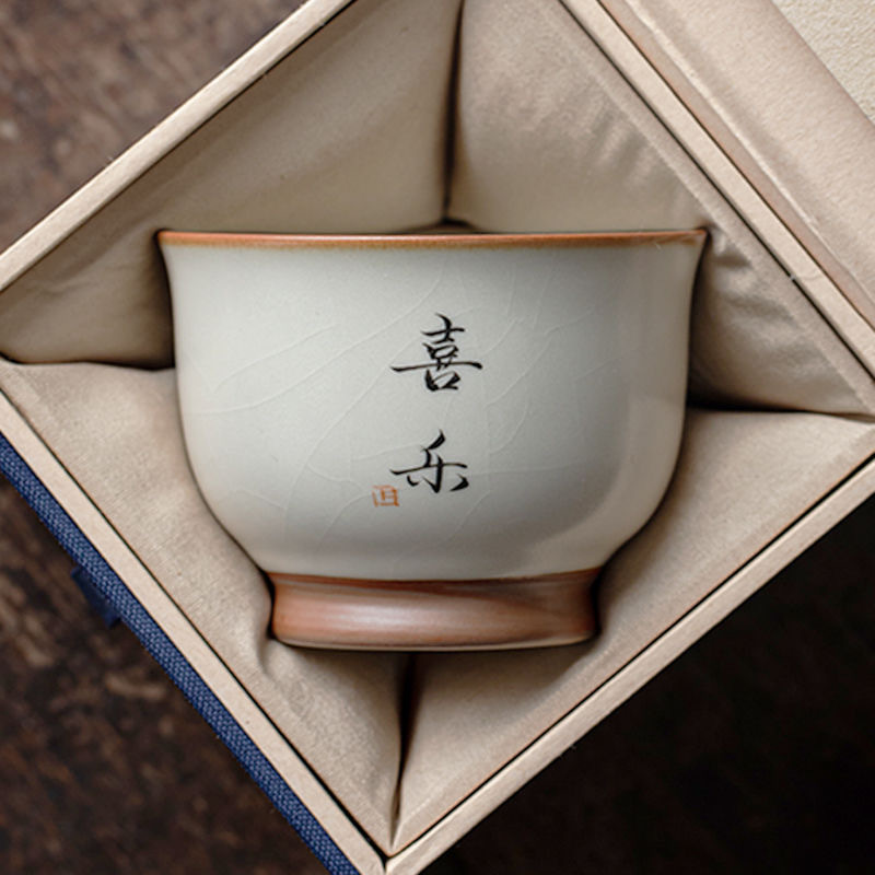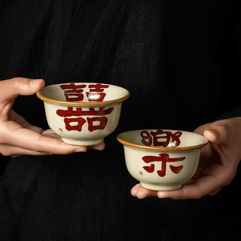 汝窯茶杯陶磁器喜楽主人杯圧手杯結婚新婚手書き個性品茗杯プレゼント