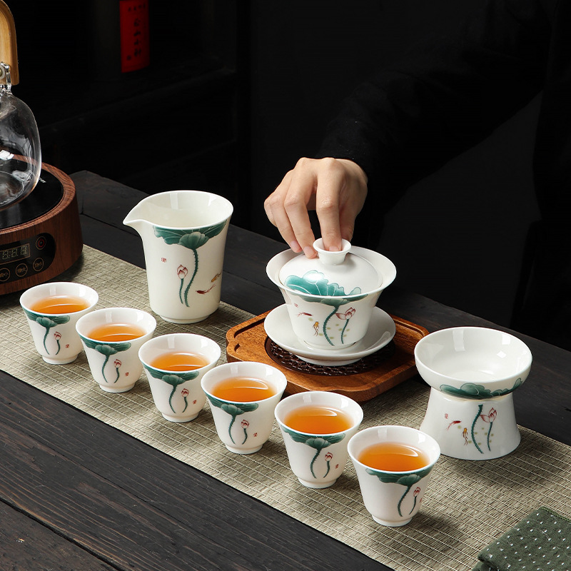 羊脂玉磁器ハスの花工夫茶器家庭用三才蓋碗セットオフィス茶器開業ロゴプレゼント