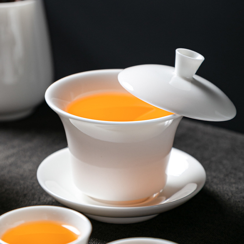 徳化羊脂玉白磁茶は三才で碗をかぶせます。