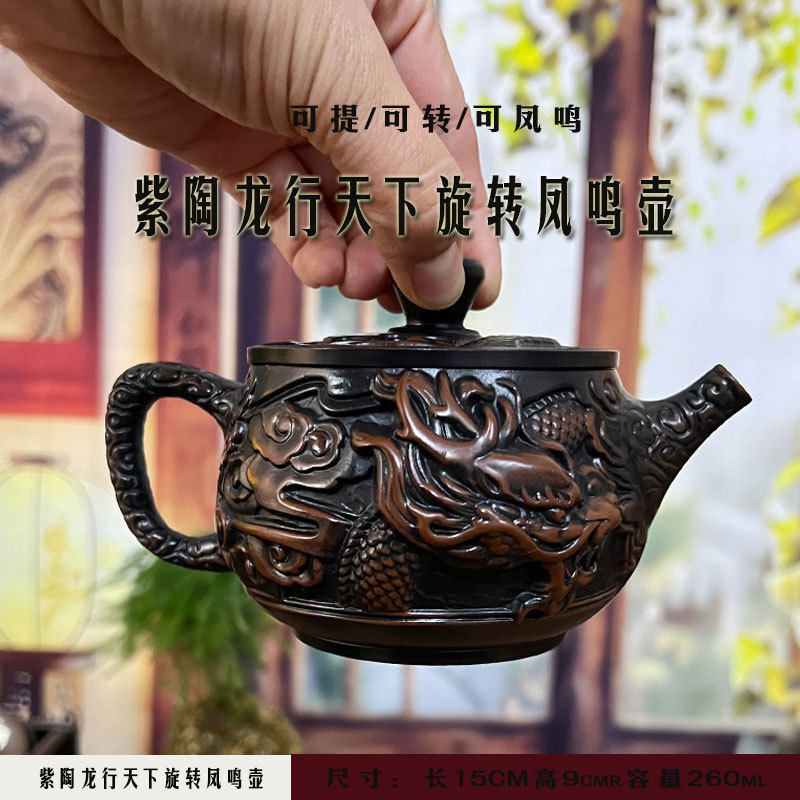 新品の紫陶回転鳳鳴壺は回転可能な手彫り大容量の漢瓦鳳鳴壺のカンフーポットを持つことができます。