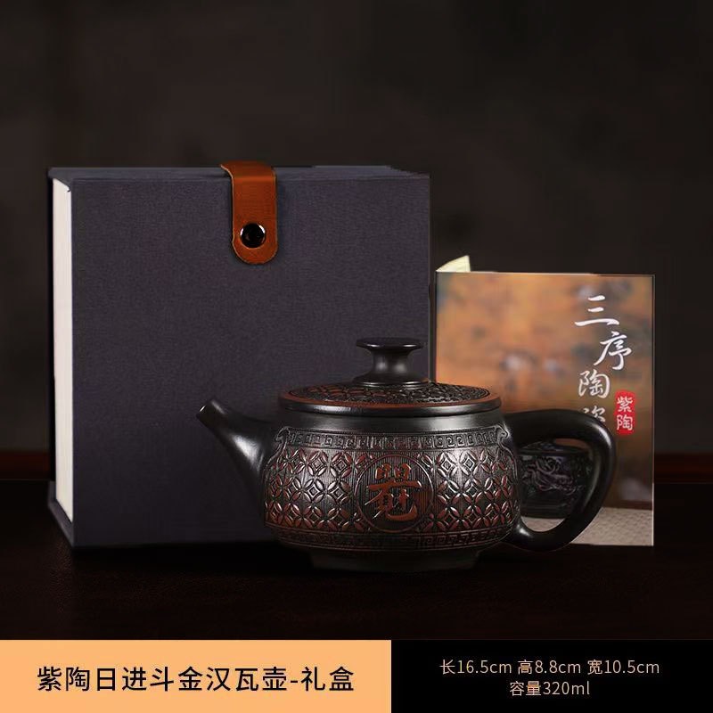 建水紫陶壺純手作りレリーフハスの花漢瓦壺単壺家庭用茶器ティーポット鳳鳴復古