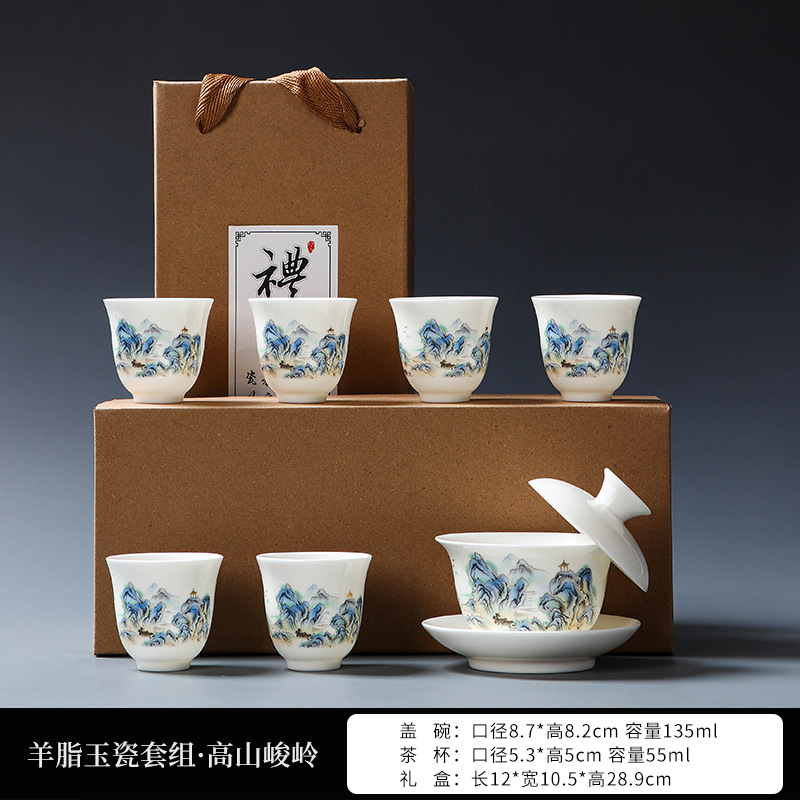 羊脂玉磁器工夫茶器家庭用ホバリング蓋セットオフィス茶器イベント店舗ロゴプレゼント