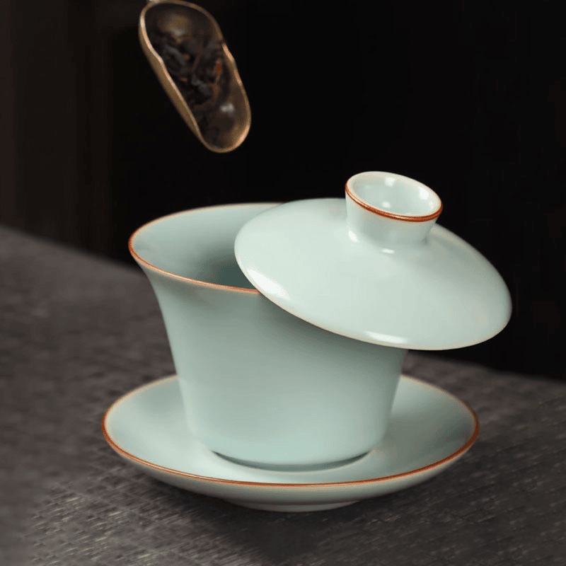 天青汝窯開片は三才蓋をして回転してお茶を入れることができます。