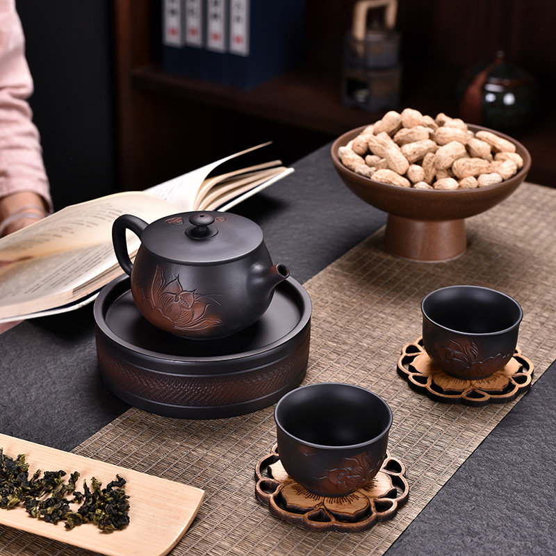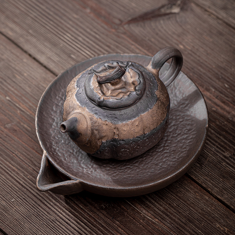 金鉄釉薬家庭用禅木壺承陶磁器茶承茶托急須台座壺托古早焼カンフー茶器