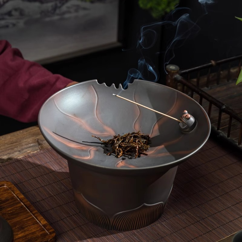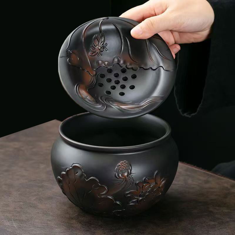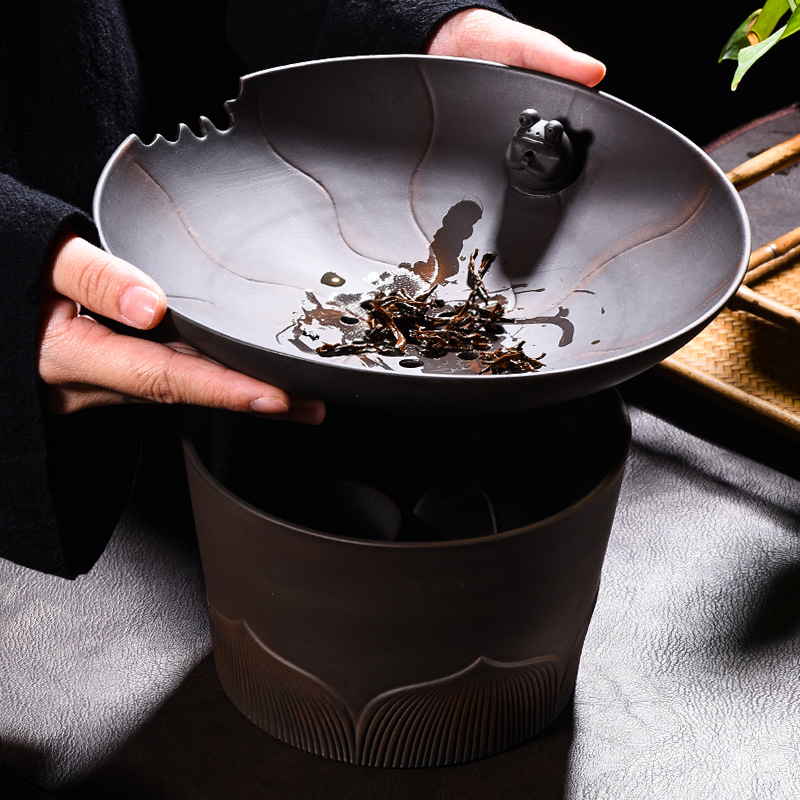 レトロ紫陶荷韻建水茶滓かめ大サイズ茶杯水盆創意中国式蓋付き濾過茶滓桶茶洗
