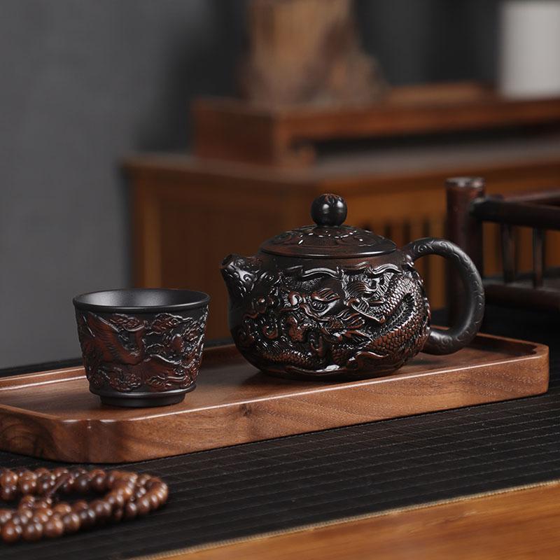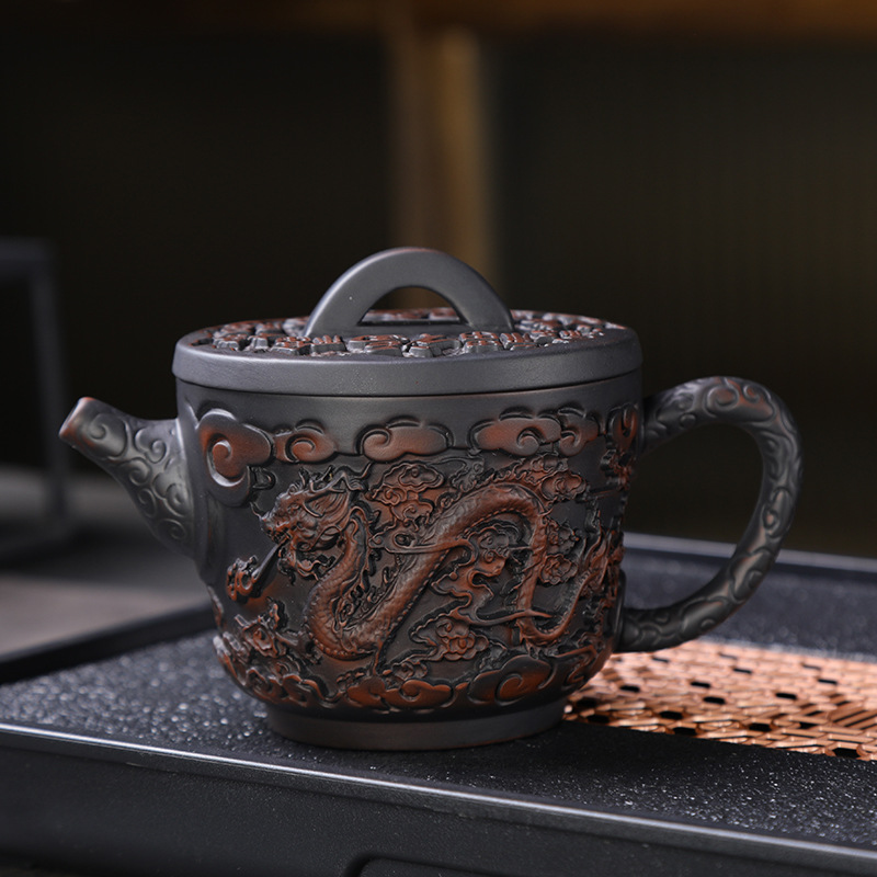 建水紫陶急須泡茶専用純手彫り龍紋西施壺紫陶壺茶器セット泡急須