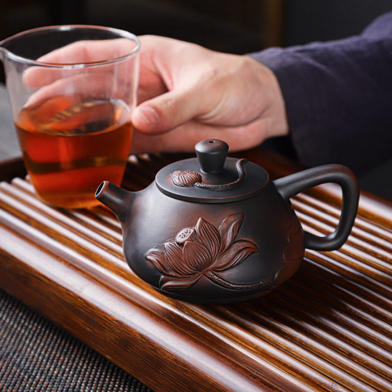 紫陶急須浮き彫り手作り茶レトロ紫砂壺跳刀西施壺朱泥単壺陶磁器工夫茶器