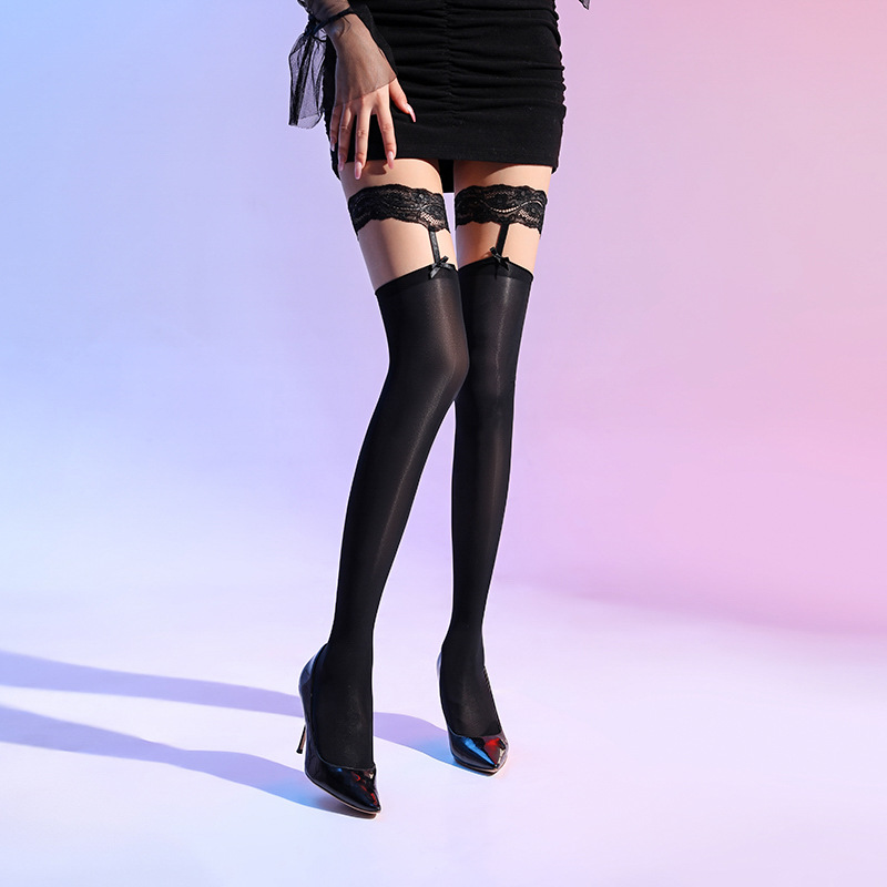 クロスボーダー8Dオイリーコントラストカラー馬油ロングストッキングレッドエッジレースセクシーな純粋な欲望ハイチューブ膝上ナイトクラブセクシーソックス