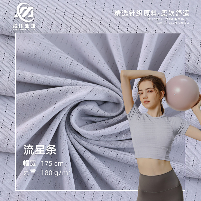 新商品の現物は流れ星のスポーツウェアの日焼け止め服のtシャツのヨガ服のメッシュの布の生地を卸売りします。