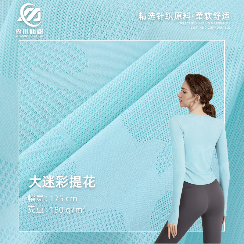 新品大迷彩ジャカードスポーツ速乾涼感ヨガ服スポーツウェア日焼け止めtシャツニット生地