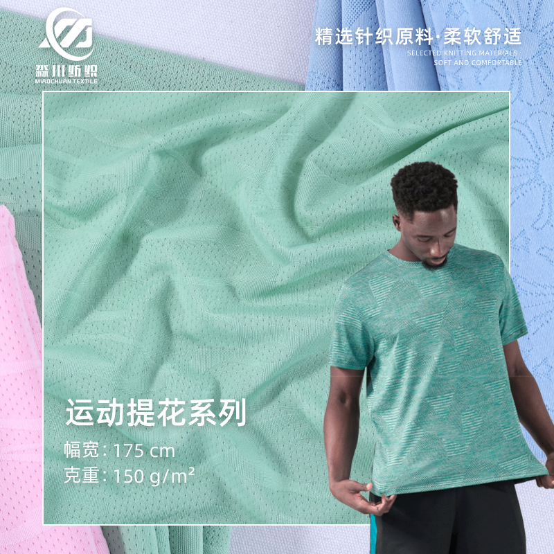 スポット卸売千叶ジャカード生地スポーツ速干生地tシャツセットジャカードニットメッシュ布