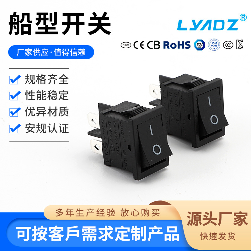 Kcd1角型電源スイッチ15*21四脚ly601dブラック10a大電流船型スイッチボタン