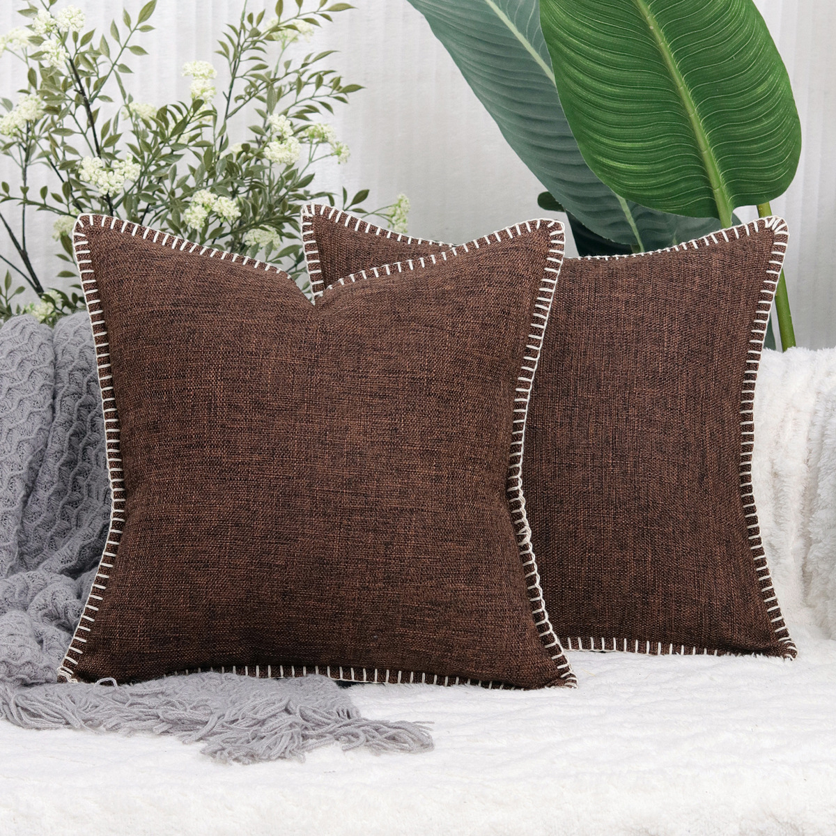 三角針綿糸縫合純色綿麻抱き枕カバーシンプルなレトロなリネンクッションカバー