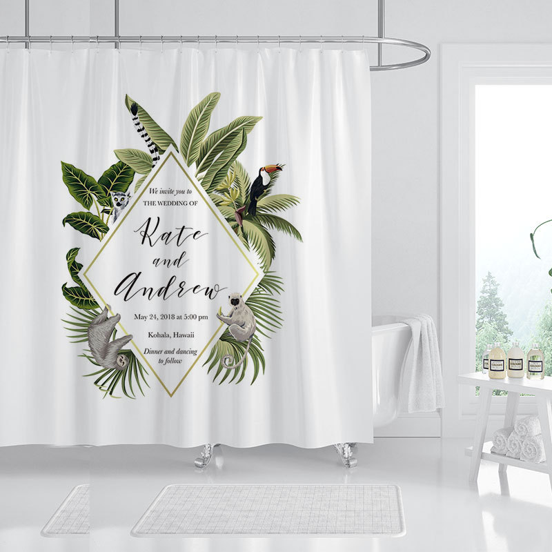 工场カスタムデジタルプリント防水シャワーカーテンクロスボーダー热い贩売150g厚いリード付きcリング浴室カーテン