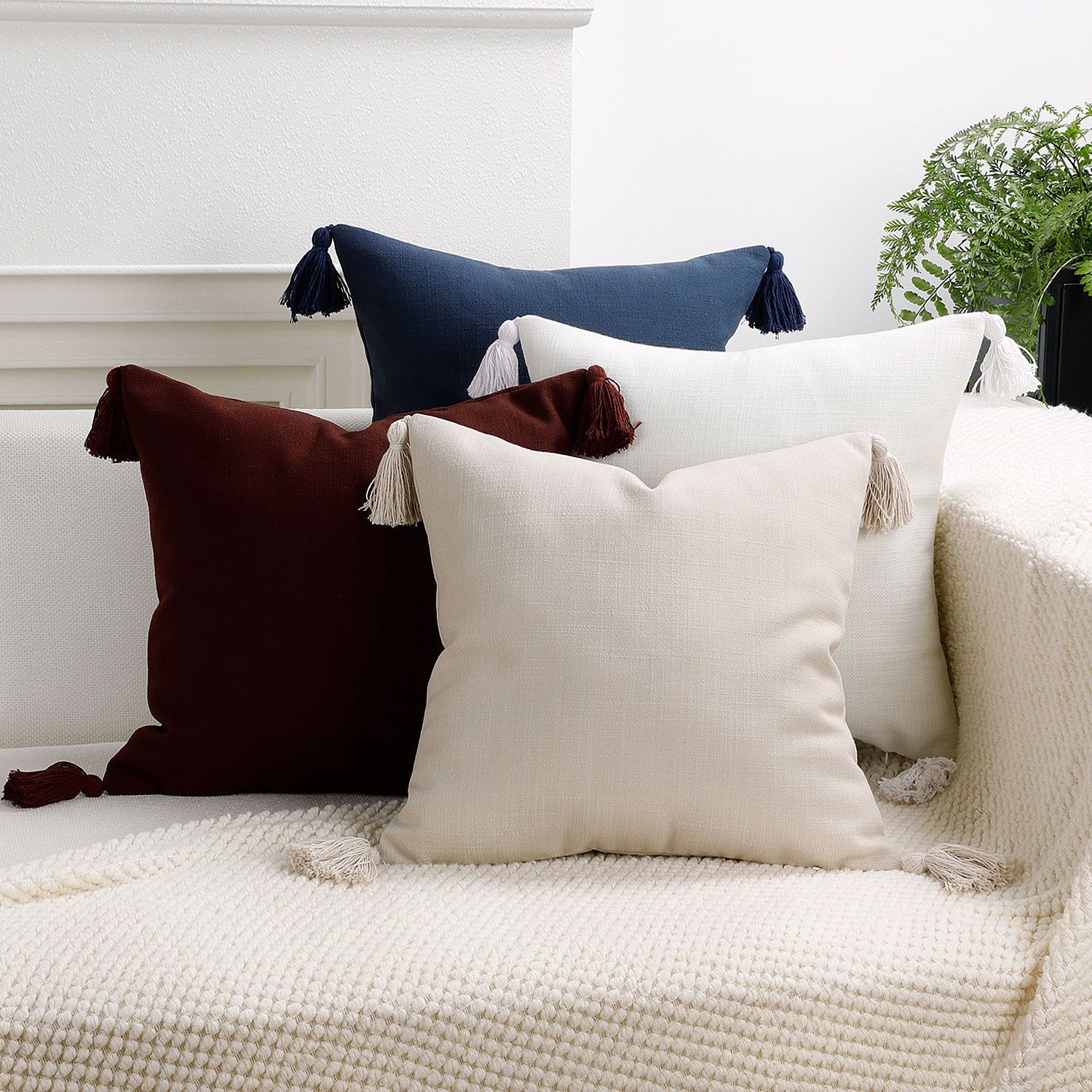 純色の綿麻のクッションカバー、フリンジのつり穂の装飾の四季型のソファーの抱き枕カバー