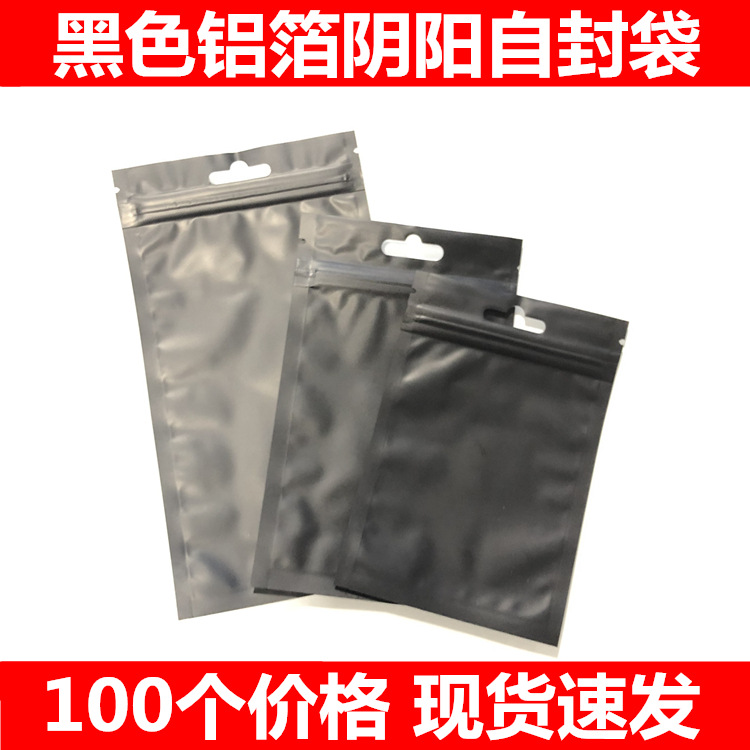 黒いつや消し半透明自封袋アルミ陰陽骨袋電子製品小物自封密封袋
