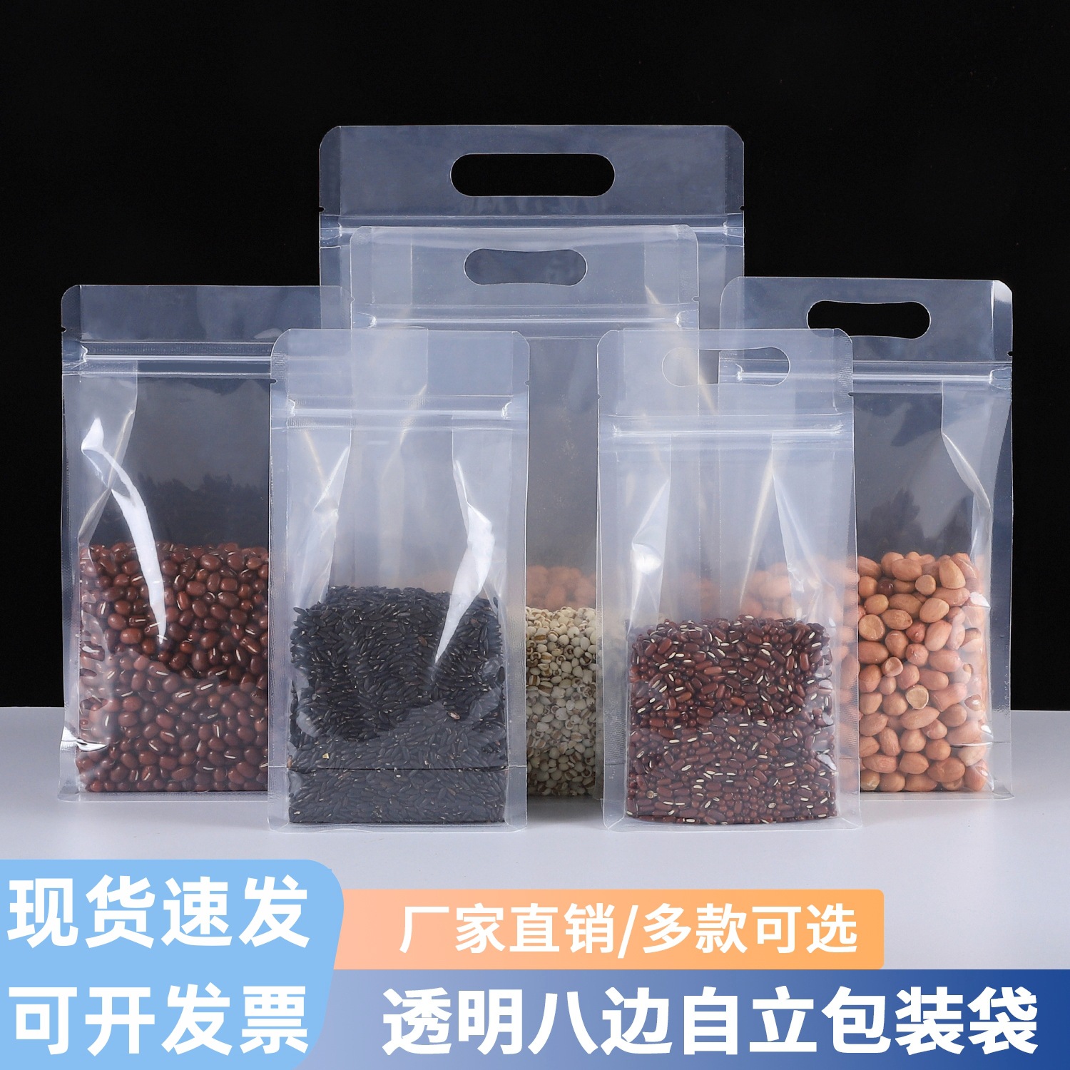 手提げ高清透明八辺封自封自封自立袋厚手食品茶葉乾燥果間食品包装密封袋